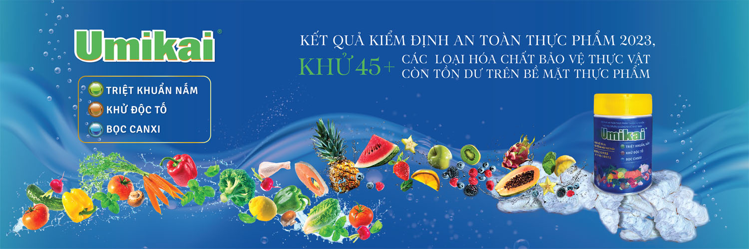 Bột rửa rau củ quả thịt cá Umikai - Công Nghệ Ion Nhật Bản, giải pháp an toàn thực phẩm thuận tự nhiên theo tiêu chuẩn và công nghệ Nhật Bản được chuyển giao hơn 20 năm. Giúp triệt các loại khuẩn, nấm gây ngộ độc thực phẩm, Khử tồn dư thuốc bảo vệ thực vật trên bề mặt thực phẩm và giúp bảo quản thực phẩm tươi ngon lâu hơn.