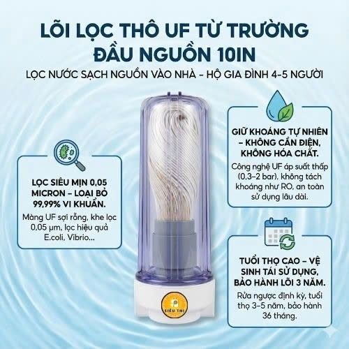 LÕI LỌC THÔ UF TỪ TRƯỜNG ĐẦU NGUỒN 10IN (LỌC NƯỚC SẠCH NGUỒN VÀO NHÀ HỘ GIA ĐÌNH 4-5 NGƯỜI)