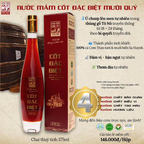NƯỚC MẮM CỐT ĐẶC BIỆT MƯỜI QUÝ TT375ML (100% TỪ CÁ CƠM THAN TƯƠI TRƯỞNG THÀNH VÀ MUỐI BIỂN)